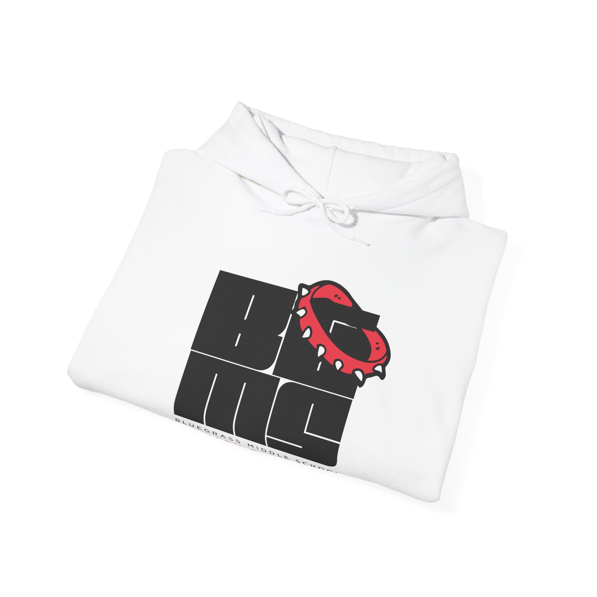The front of the hoodie features the bold BGMS Unleashed graphic, symbolizing school spirit and pride for the Bluegrass Bulldogs. This hoodie is the perfect addition to your school spirit collection!